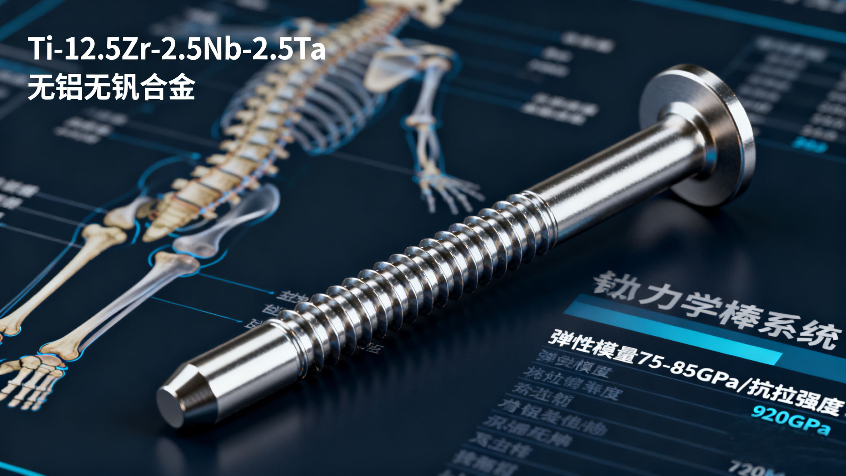 β钛合金因具备低弹性模量、高塑性及优异生物相容性,成为近十年医用钛合金研发的核心方向。用户提供的《新型医用钛合金Ti-12.5Zr-2.5Nb-2.5Ta的研究》系统阐述了无铝无钒β钛合金的设计理念,通过Zr、Nb、Ta等中性元素的复合添加,不仅规避了传统合金的细胞毒性风险,更将弹性模量降至75-85GPa,显著缩小了与人体骨骼的力学差异。该合金经800℃固溶处理后,抗拉强度达920MPa,伸长率保持在15%以上,实现了力学性能与生物安全性的平衡,已在脊柱植入钉棒系统中完成初步临床验证。