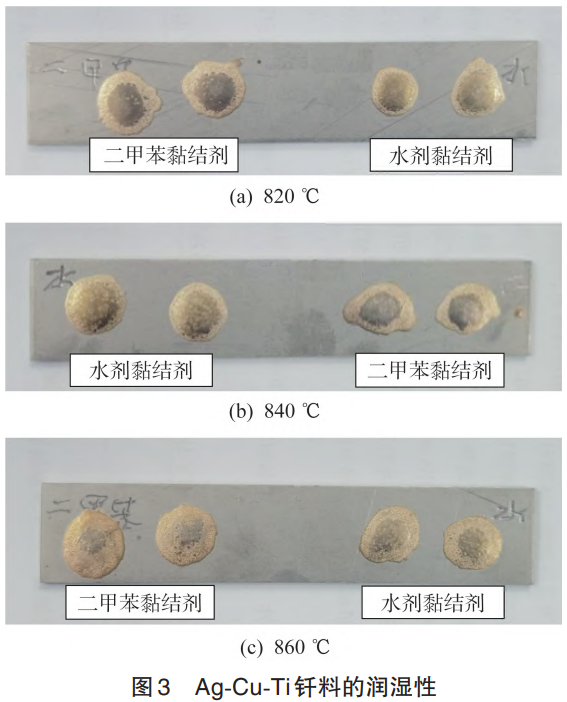 2.2.1 Ag-Cu-Ti 钎料的润湿性和填隙性