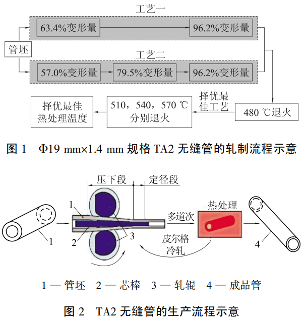 表 2TA2无缝管的两种轧制工艺试验参数