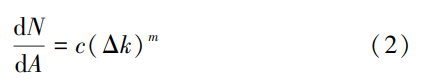 为单位循环内裂纹扩展速率;Δk为应力强度因子范围;c、m为与材料相关的常数。
