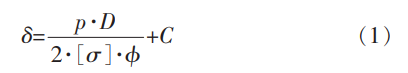 式中,C-- 腐蚀裕量,mm;D-- 管道外径,mm;p-- 管道设计压力,MPa;[σ]-- 材料的设计应力,具体为设计系数与材料最低屈服应力的乘积,MPa;φ-- 焊接系数。