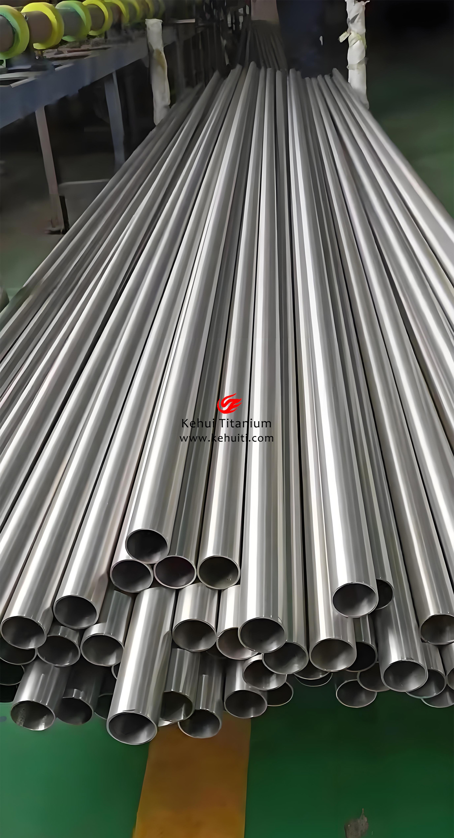 海绵钛及合金元素 → 真空自耗电弧熔炼(VAR)铸锭 → 锻造开坯(制成棒坯)→ **热穿孔/挤压**(制成荒管)→ **多道次冷轧**(中间穿插真空退火)→ 成品热处理(退火)→ 矫直与定尺 → 表面处理(酸洗、钝化)→ **无损检测**(涡流探伤、水压试验)→ 尺寸与性能检验 → 包装入库。